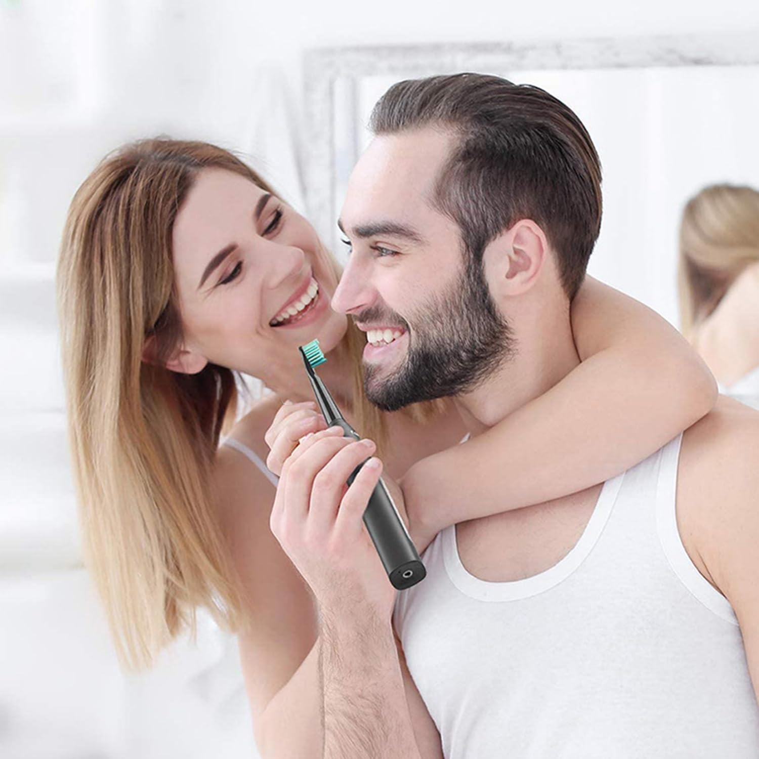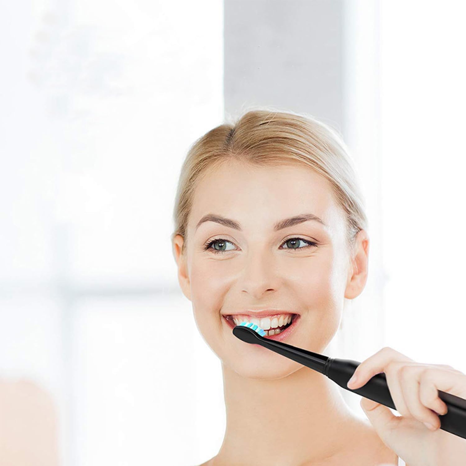 Før brug af vores avancerede soniske tandbørste kan plakopbygning, misfarvning og følsomme gummer være almindelige problemer, hvilket ofte fører til dårlig ånde og en usund mundhygiejne. Efter blot få ugers brug vil du opleve 10 gange mere effektiv fjernelse af plak, hvidere tænder og stærkere gummer, så du får en frisk, tandlægeren-ren fornemmelse og et selvsikkert smil hver dag.